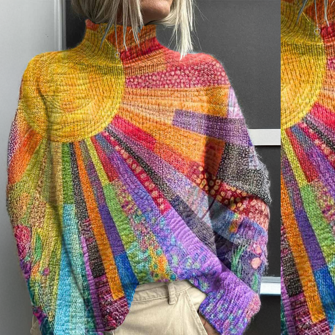 Adalynn - Kolorowy sweter z golfem o wzorze patchwork